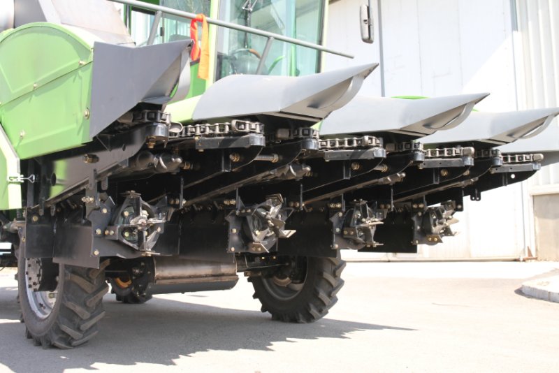 產品簡介:玉米收割機和自走式多功能整地機:車身矮、車身短,重心低、雙速扒皮機、雙速割臺,四驅,四個輪胎一樣大,適合坡地作業,最大作業坡度35度,最大爬坡度45度,全部四驅,常柴4G33或4L88發動機,配備強力風機和糧倉跑步機,輪距可調(小三行1800至1750至1700,大三行及小四行1800至1900至2000),行距(520、580、630),軸距(四行2500,三行2200),收粘苞米專用部件及倒伏尖可選配。(1)四行102馬力,重量5噸,帶駕駛室,縮式檔,邊減橋,35度轉向角,卸糧高度2300,騎三割四,全國統一零售價15.2萬,國家補貼5.6萬左右;(2)大三行102馬力,重量4.2噸,帶駕駛室,騎三割三,全國統一零售價12.8萬,國補4.2萬左右;(3)小三行85馬力,重量4噸,不帶駕駛室,騎三割三,全國統一零售價11.7萬,國補4.2萬左右。(4)多功能整地機沒有補貼,基本配置零售價3.98萬左右,可選購鏟0.25萬元、抓抱0.1萬元等其他裝備。(5)聯系人工廠銷售馮總18741301001。
